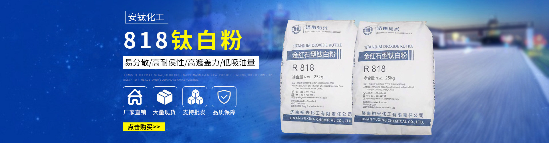 常州安鈦化工有限公司經(jīng)銷批發(fā)的鈦白粉、沉淀硫酸鋇、立德粉、滑石粉、高嶺土、炭黑、云母粉、彩色顏料、氫氧化鈣、硅微粉、氧化鐵紅、氧化鐵黑、金紅石型鈦白粉、銳鈦型鈦白粉、進口鈦白粉暢銷消費者市場,在消費者當中享有較高的地位,公司與多家零售商和代理商建立了長期穩(wěn)定的合作關(guān)系。常州安鈦化工有限公司經(jīng)銷的鈦白粉、沉淀硫酸鋇、立德粉、滑石粉、高嶺土、炭黑、云母粉、彩色顏料、氫氧化鈣、硅微粉、氧化鐵紅、氧化鐵黑、金紅石型鈦白粉、銳鈦型鈦白粉、進口鈦白粉品種齊全、價格合理。常州安鈦化工有限公司實力雄厚,重信用、守合同、保證產(chǎn)品質(zhì)量,以多品種經(jīng)營特色和薄利多銷的原則,贏得了廣大客戶的信任。